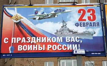 22 февраля, накануне Дня защитника отечества, московским властям в спешном порядке пришлось демонтировать с центральных городских улиц билборды, чуть не ставшие причиной серьезного скандала. К празднику комитет рекламы, информации и оформления Москвы, как обычно, заказал и разместил по городу плакаты с поздравительными словами и патриотической символикой.