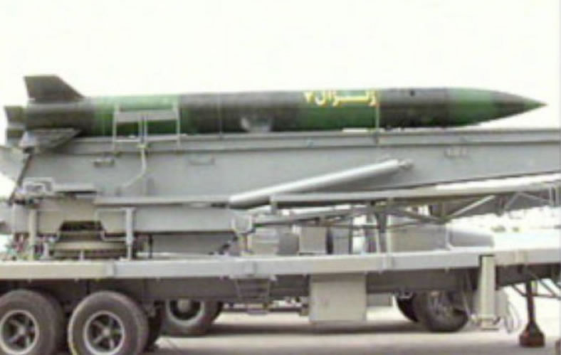 Иранская ракета Зелзал-2, длина 8,46 м, диаметр 0,61 м. Общий вес 3,5 тонны. Дальность – 200 км, вес боеголовки 600 кг.