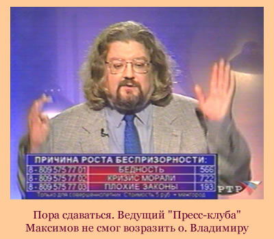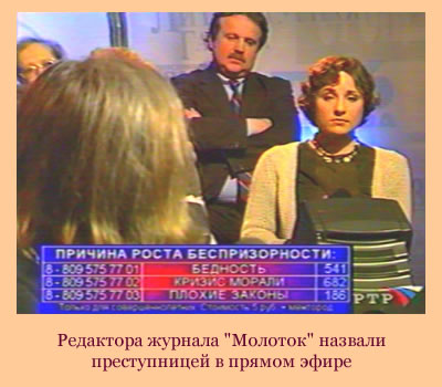 О. Владимир также выступил против безнравственного журнала "Молоток", редактор которого оказалась среди приглашенных на передачу. О. Владимир Переслегин назвал редактора журнала "преступником". Подробнее читайте в материале о. Владимира: "Жестокость к растлителям есть милосердие к детям".